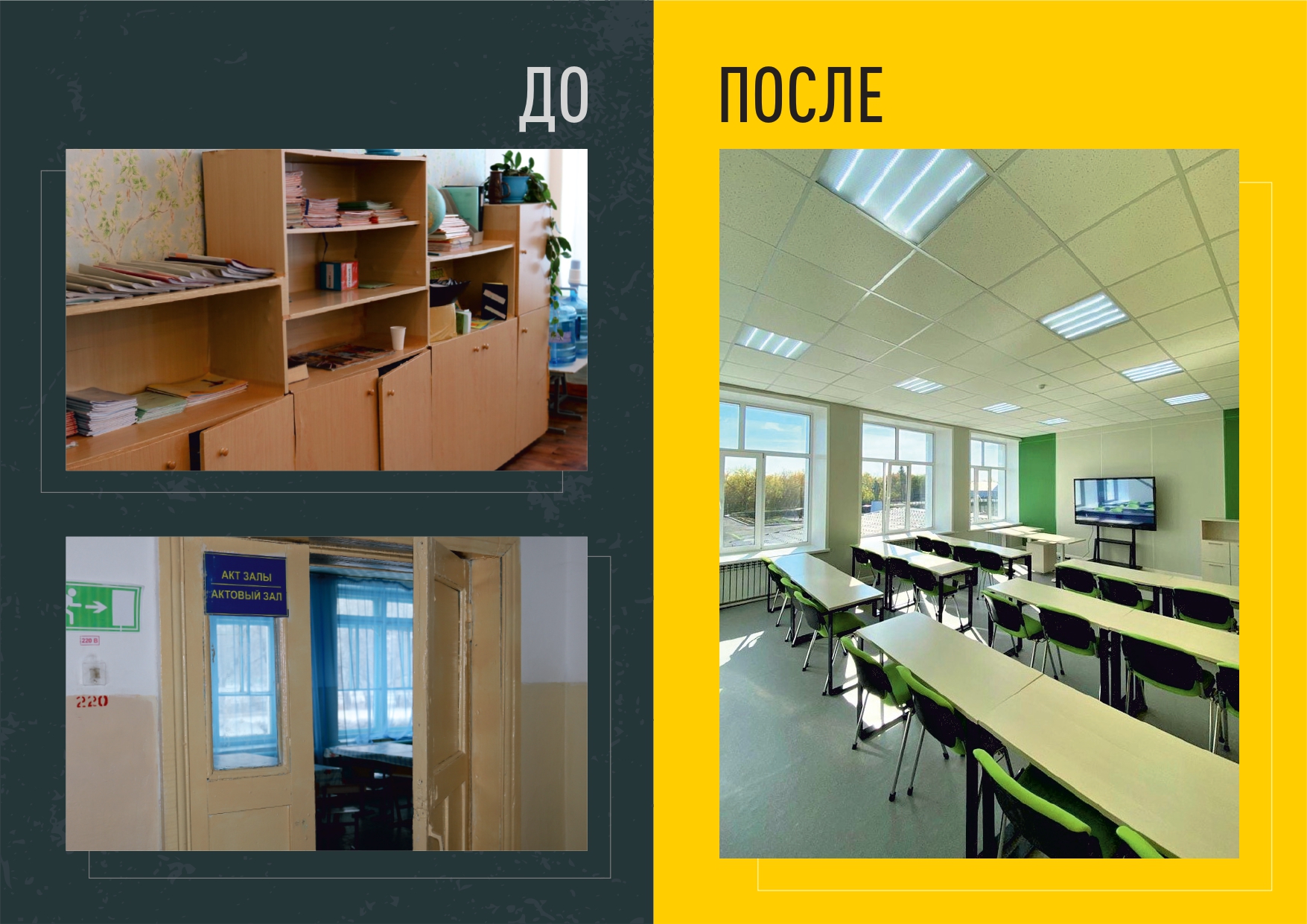 Сіздердің назарларыңызға жүзеге асқан алғашқы жобамыздың көрінісін ұсыналық. Бұл мектептің жаңғыру тарихы туралы Рауан Кенжеханұлының әлеуметтік парақшаларынан және http://kzh-abay.edu.kz мекенжайынан таба аласыздар.